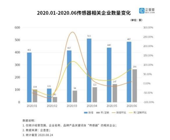同时,受经济环境影响,已登记或吊销营业执照的企业数量也日益增多,其中6月份吊销营业执照的传感器企业266家,同比增长80.95%。